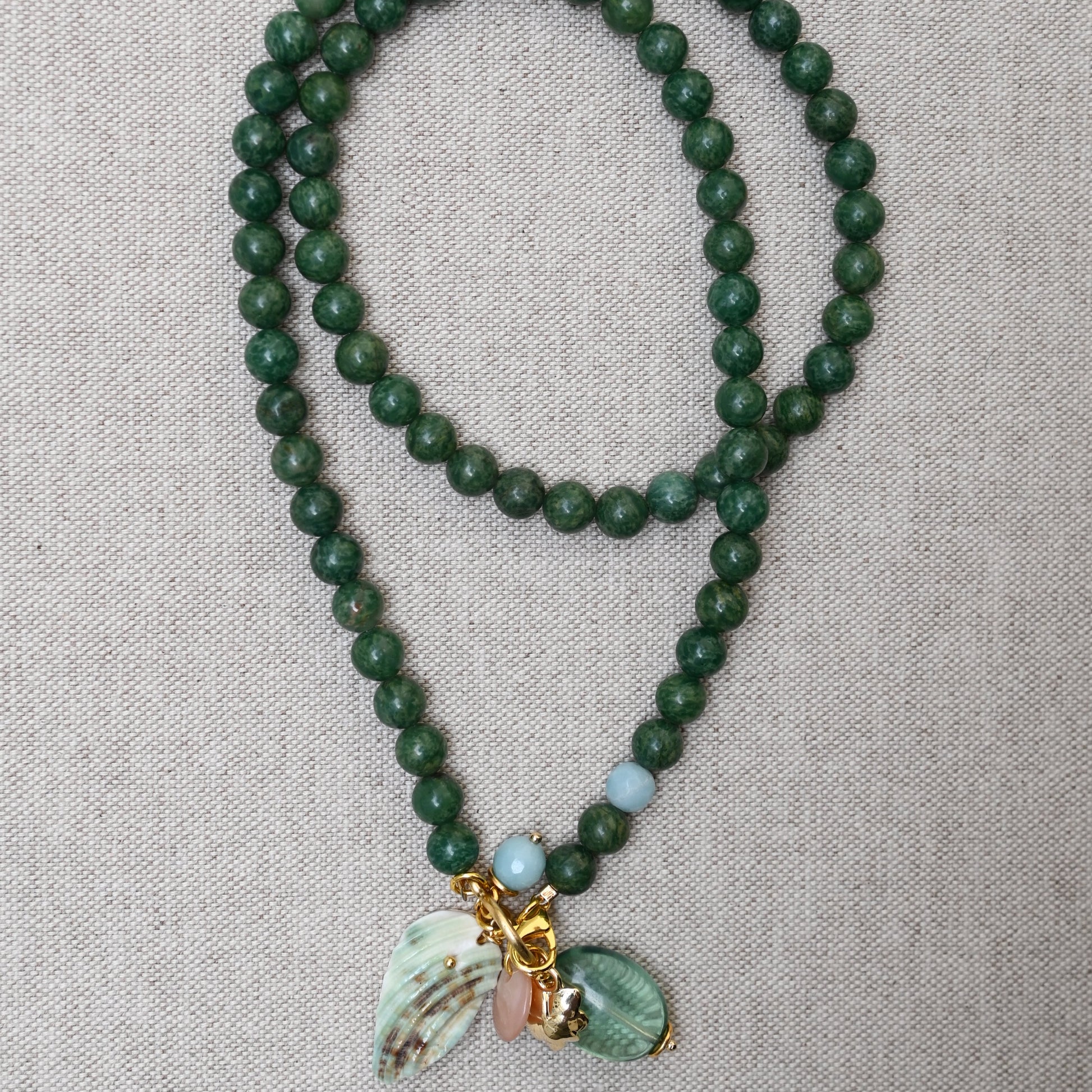 Green Jade is known for its strong healing abilities. We combined a collection of gemstones and charms that can be worn long or clasped higher for a lariat look. This is the shade of green that layers perfectly with your favorite jewelry.