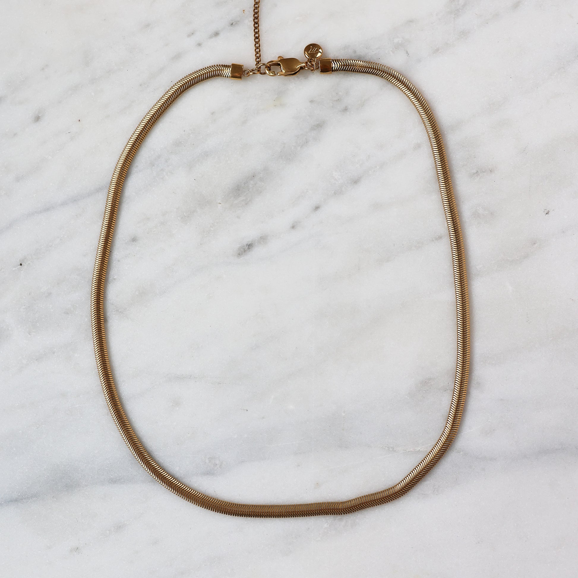 A classic herringbone chain. A mainstay for creating layers or your goto piece you reach for daily.